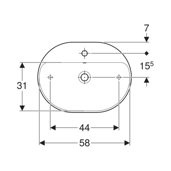 / Geberit VariForm Çanak Lavabo, Eliptik ve Batarya Banklı, 60×45 cm (Taşma Delikli)