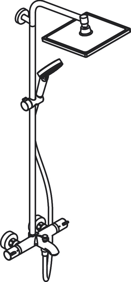 şunları içerir: tepe duşu, el duşu, banyo termostatı, duş hortumu, sürgü, duş barı