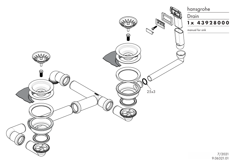 Hansgrohe D17-10 Manuel Gider ve Taşma Seti Çift Hazneli Granit Eviye İçin