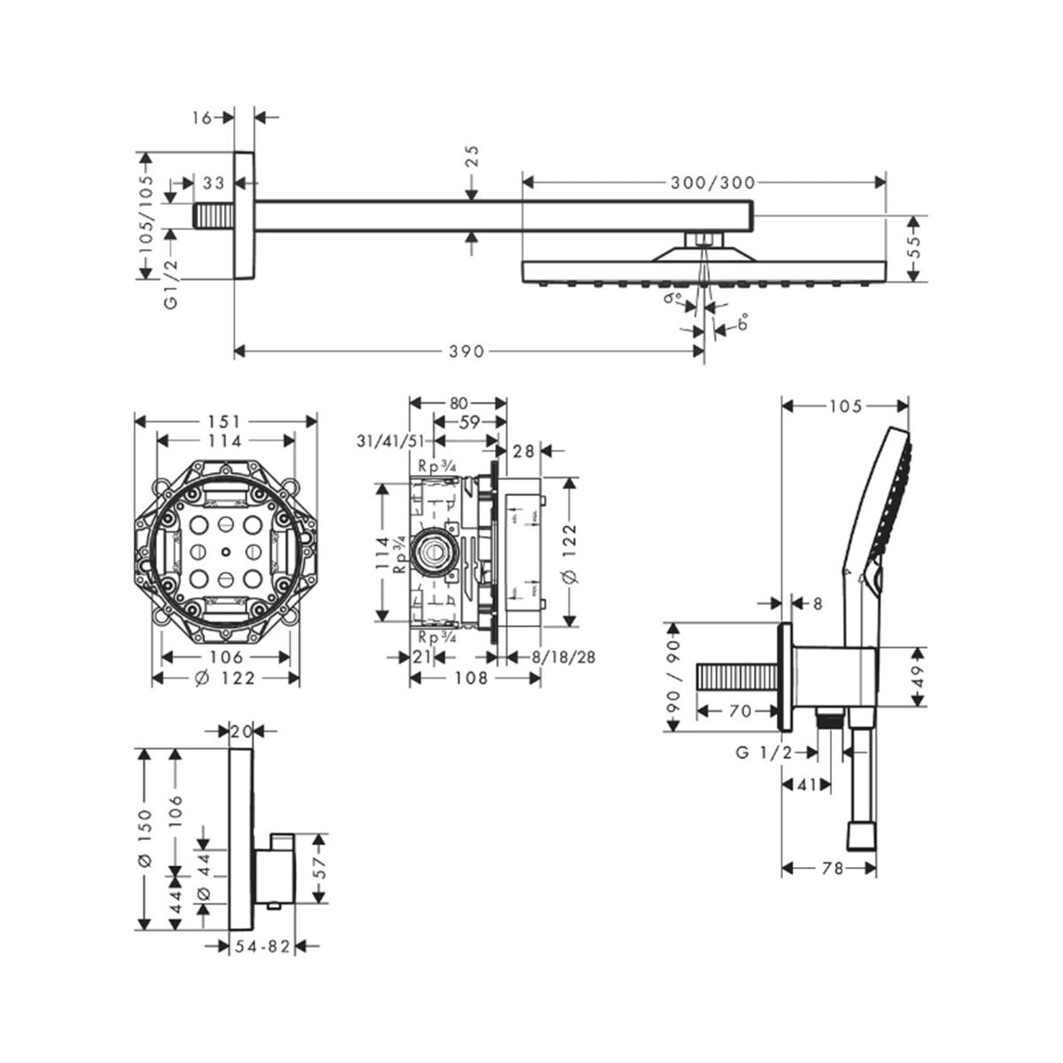 / Hansgrohe Raindance E Duş sistemi 300 1jet ShowerSelect square ile Krom