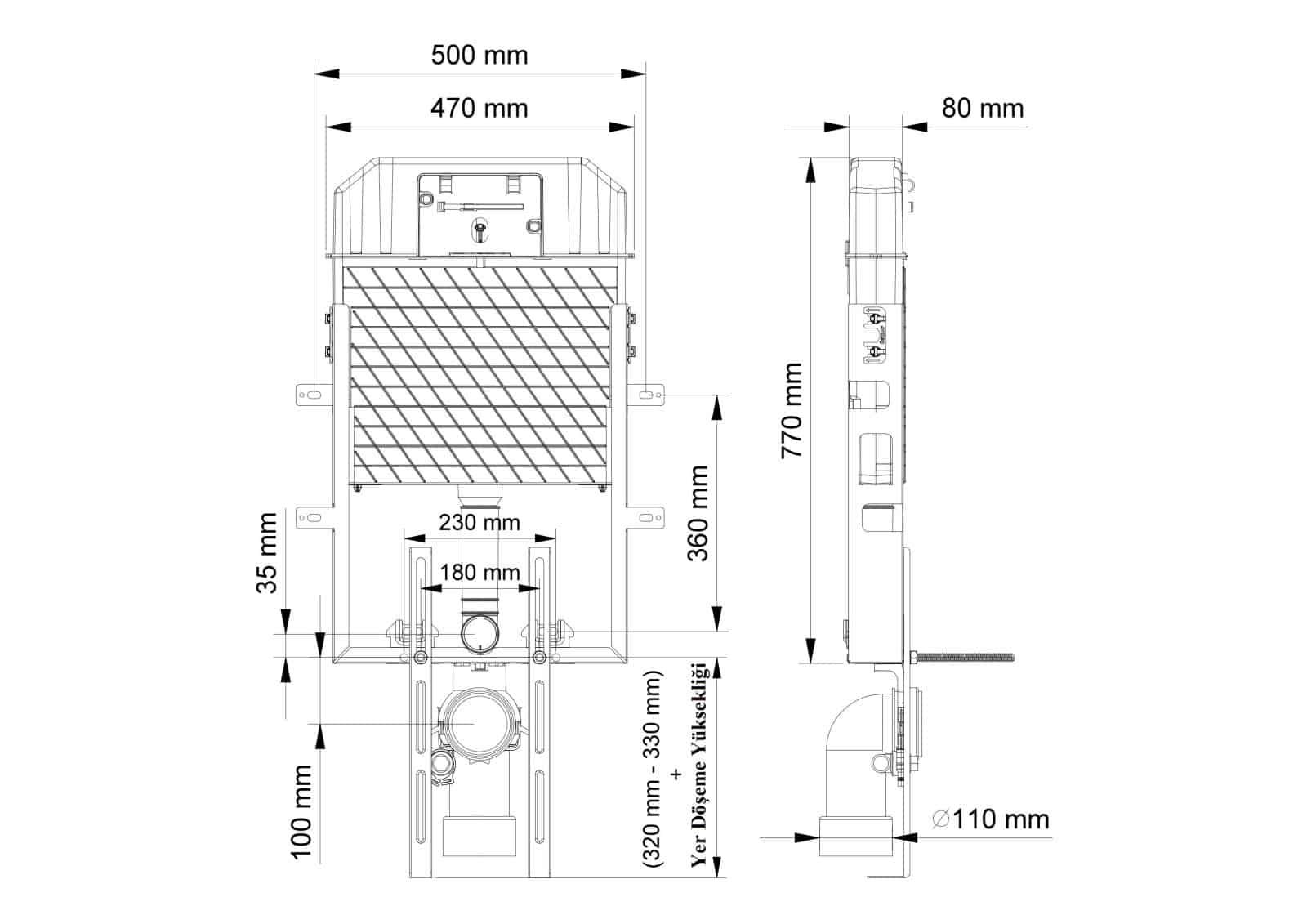 / Slim 80 – Asma Klozetler İçin (Metal Ayaklı) Gömme Rezervuar