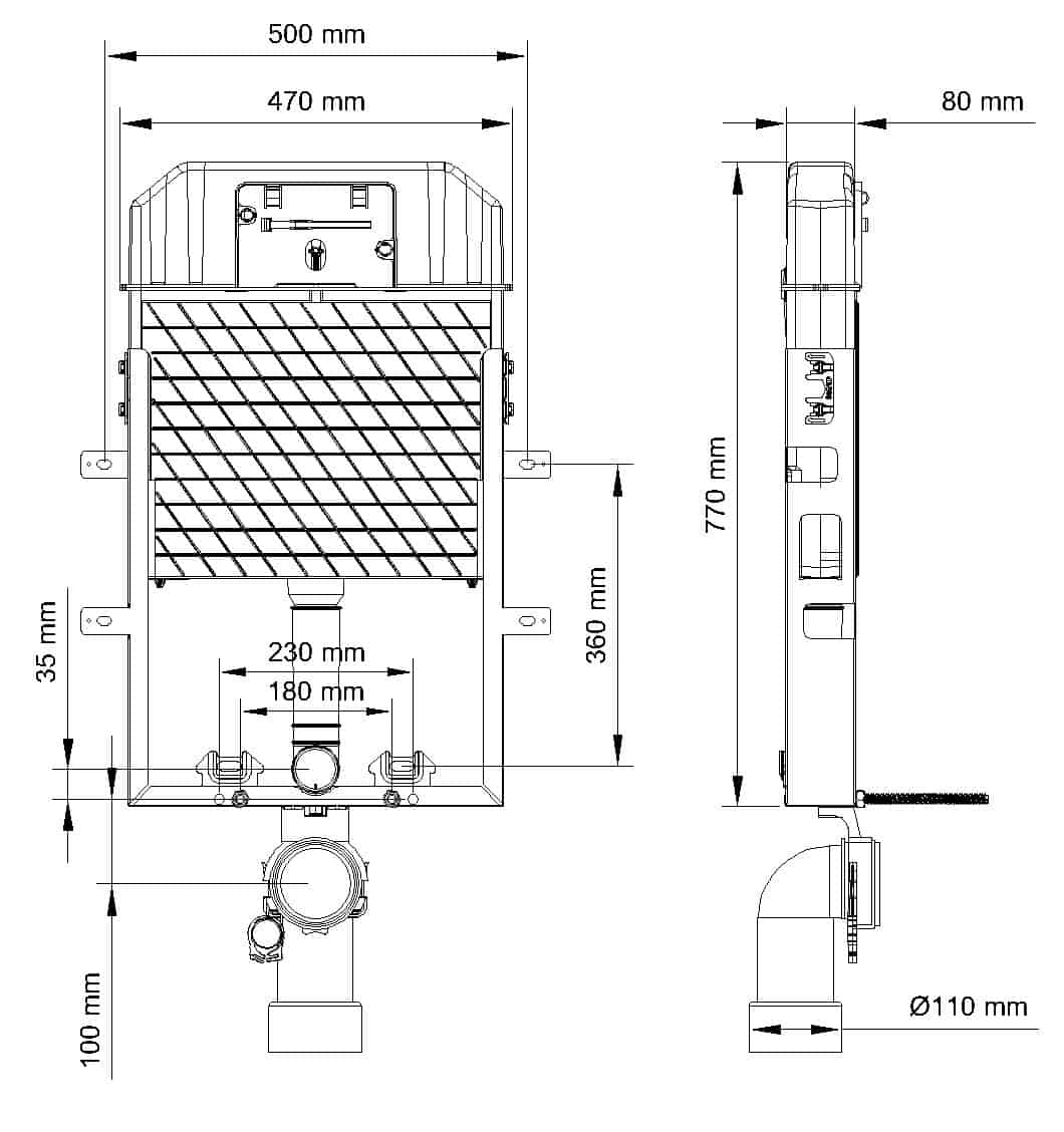 Slim 80 – Asma Klozetler İçin (Metal Ayaksız) Gömme Rezervuar